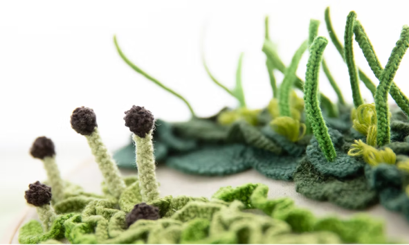 En lo pequeño también habita la vida 🌿 Microbosque Bordado nos invita a mirar de cerca: hongos, líquenes y formas mínimas del bosque sur se transforman en bordado, arte y memoria.